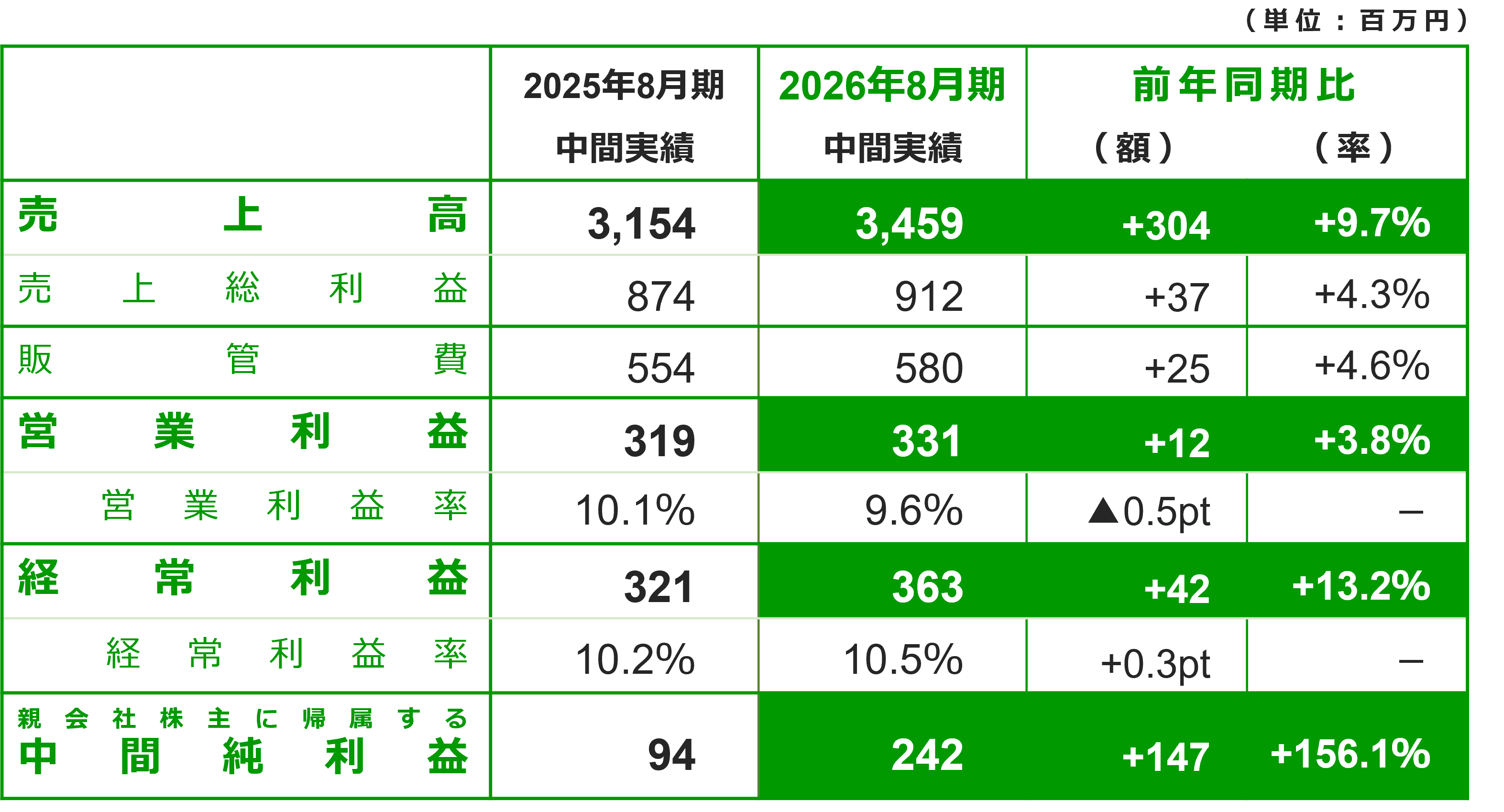 2026年8月期 中間期業績ハイライト